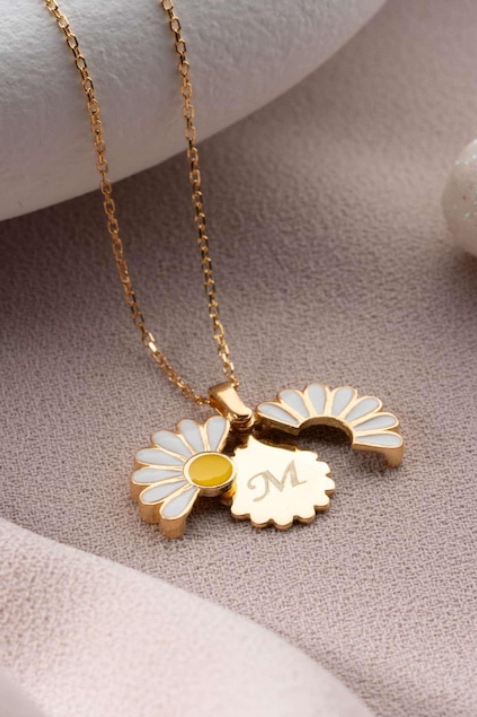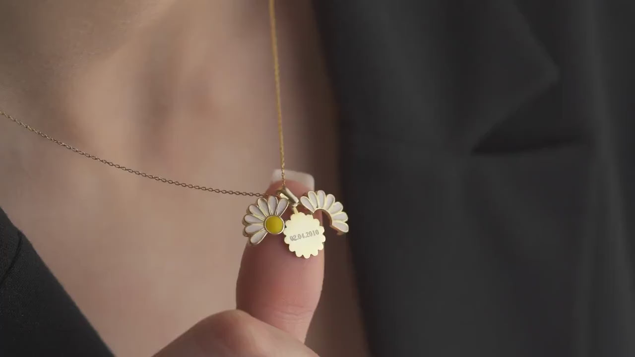 Discover the epitome of elegance with the Hidden Message Daisy Necklace by Eraya Style. Crafted from premium stainless steel, this necklace seamlessly blends durability with timeless beauty. Its sleek, polished finish ensures a sophisticated look, while the hidden photo compartment adds a personal touch.